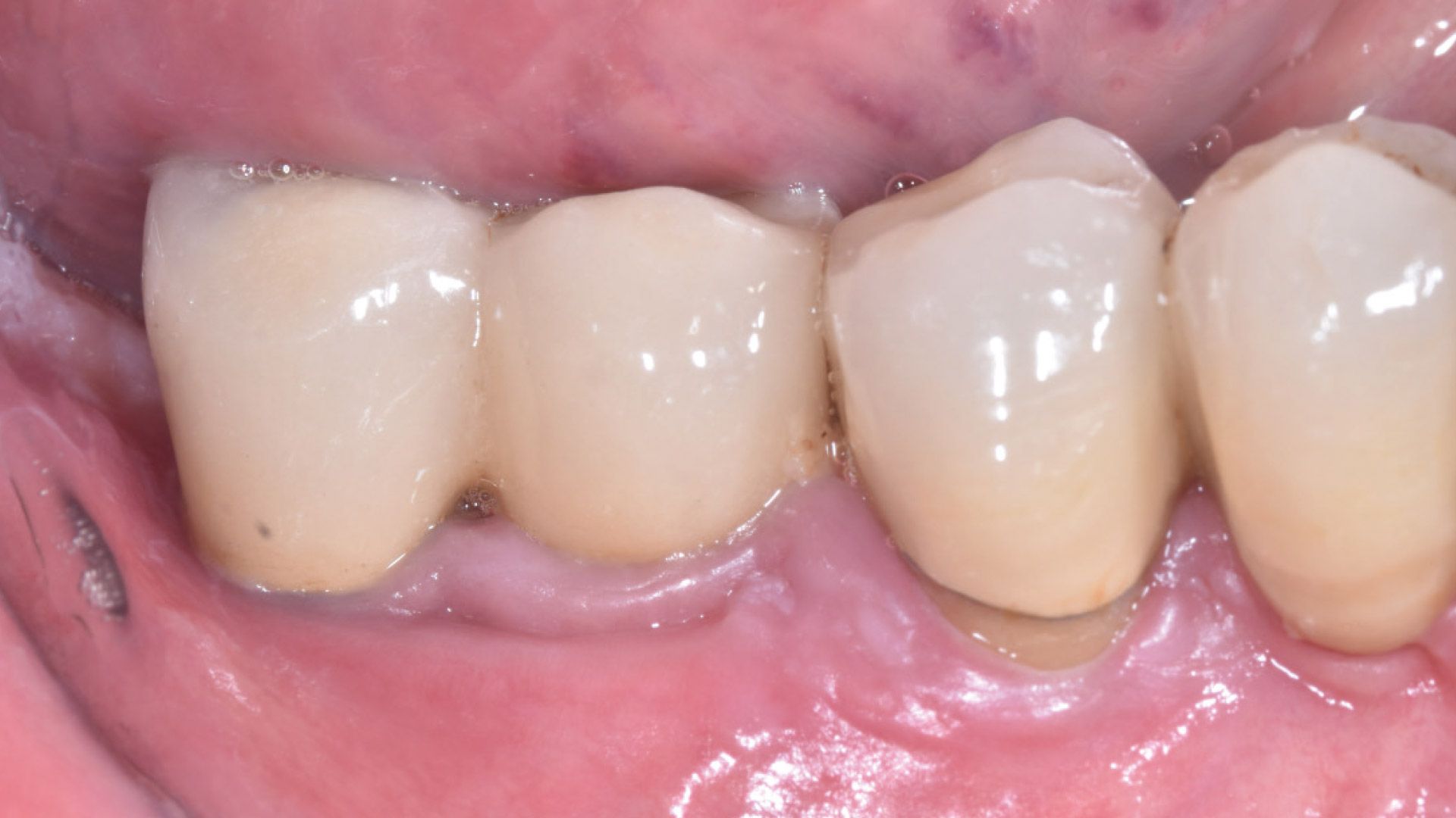 Lo studio è stato condotto presso studi dentistici privati con sede a Roma e Como. Sono stati reclutati 27 pazienti e divisi in gruppo 1 (applicazione di gel a base di clorexidina nei siti con mucosite perimplantare), gruppo 2 (applicazione di gel a base di Ozono) e gruppo 3 controllo (senza utilizzo di gel topici). Al baseline (T0) si è proceduto a valutare lo stato clinico dell’elemento implantare attraverso foto e radiografie periapicali, è stato poi rilevato l’indice di sanguinamento (Gengival Index) e successivamente è stato eseguito un debridement sub-gengivale tramite l’utilizzo di Glicina. Per il trattamento domiciliare ai pazienti sono stati consegnati gel a base di Ozono o di Clorexidina al 1% da applicare nei siti tramite lo scovolino. A T1(a 1 mese da T0) e a T2 (a 3 mesi da T0) sono state ripetute le stesse valutazioni e le stesse manovre professionali (Figg. 1a-6).