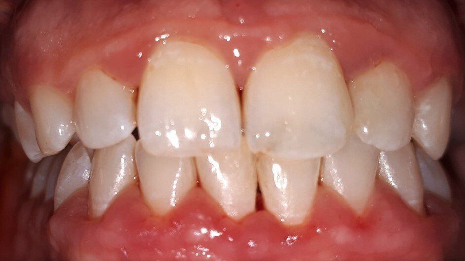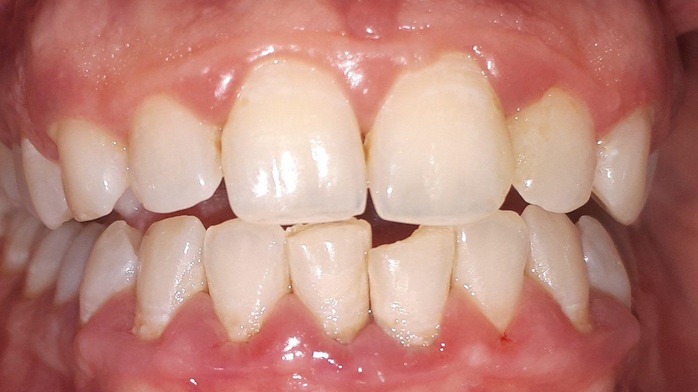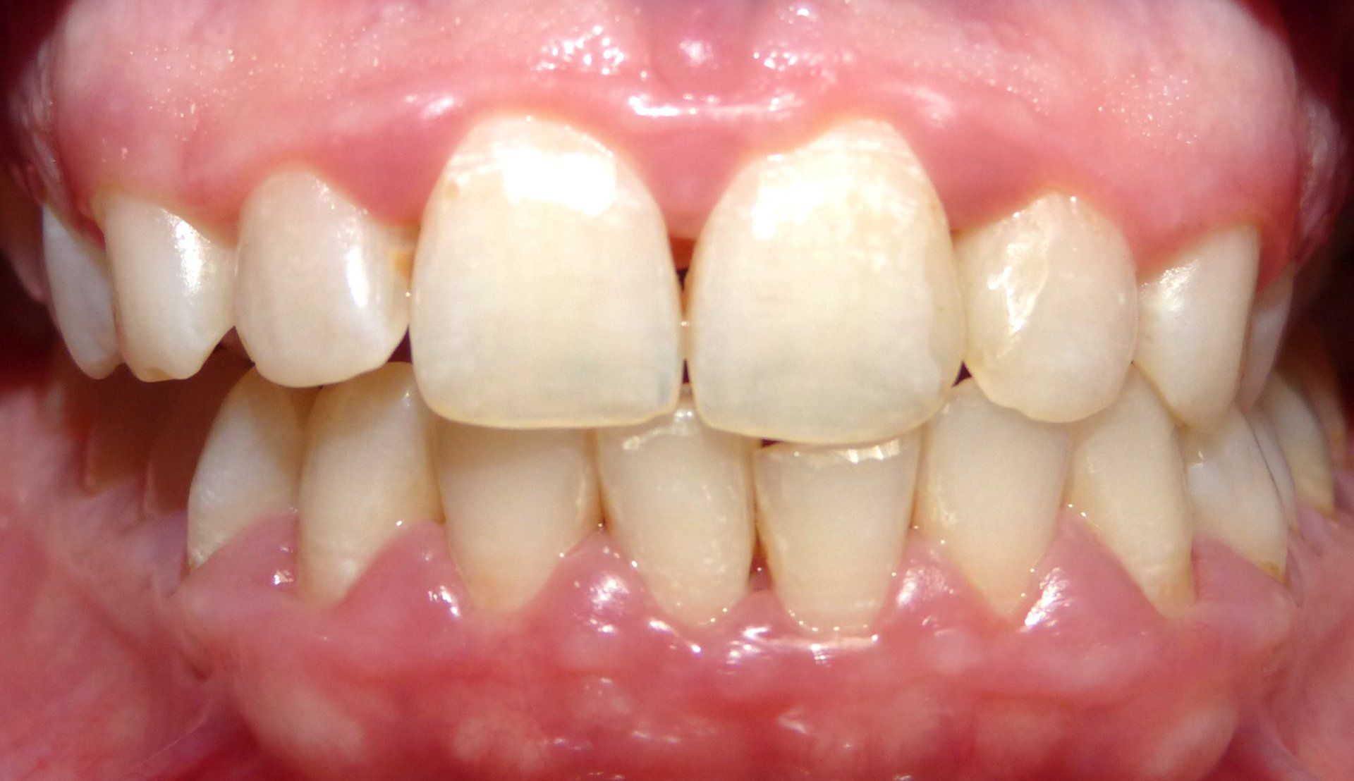 T2: Dopo 15 giorni si ripresenta in studio con notevole miglioramento dei tessuti: le gengive sono più rosee e con meno gonfiore (in particolare in corrispondenza dell’elemento 1.3), la paziente riferisce un benessere generale e di aver migliorato i rapporti interpersonali sentendosi meglio con sé stessa (Fig. 8).