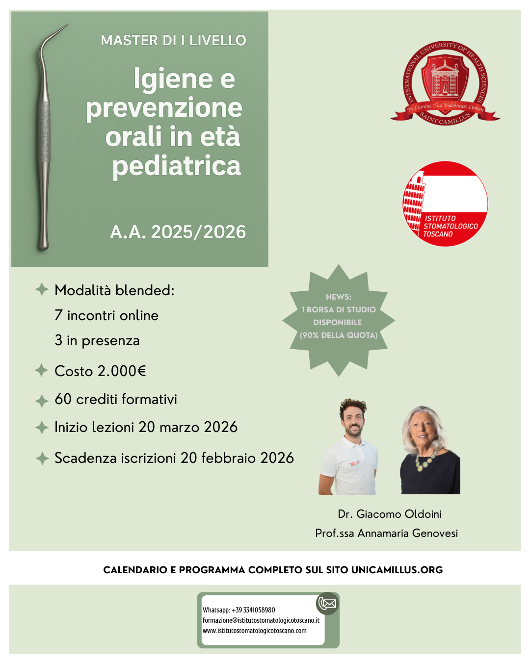 Chiama in sede per informazioni o iscrizioni sui corsi di formazione e master di 1°livello dedicati agli igienisti dentali.