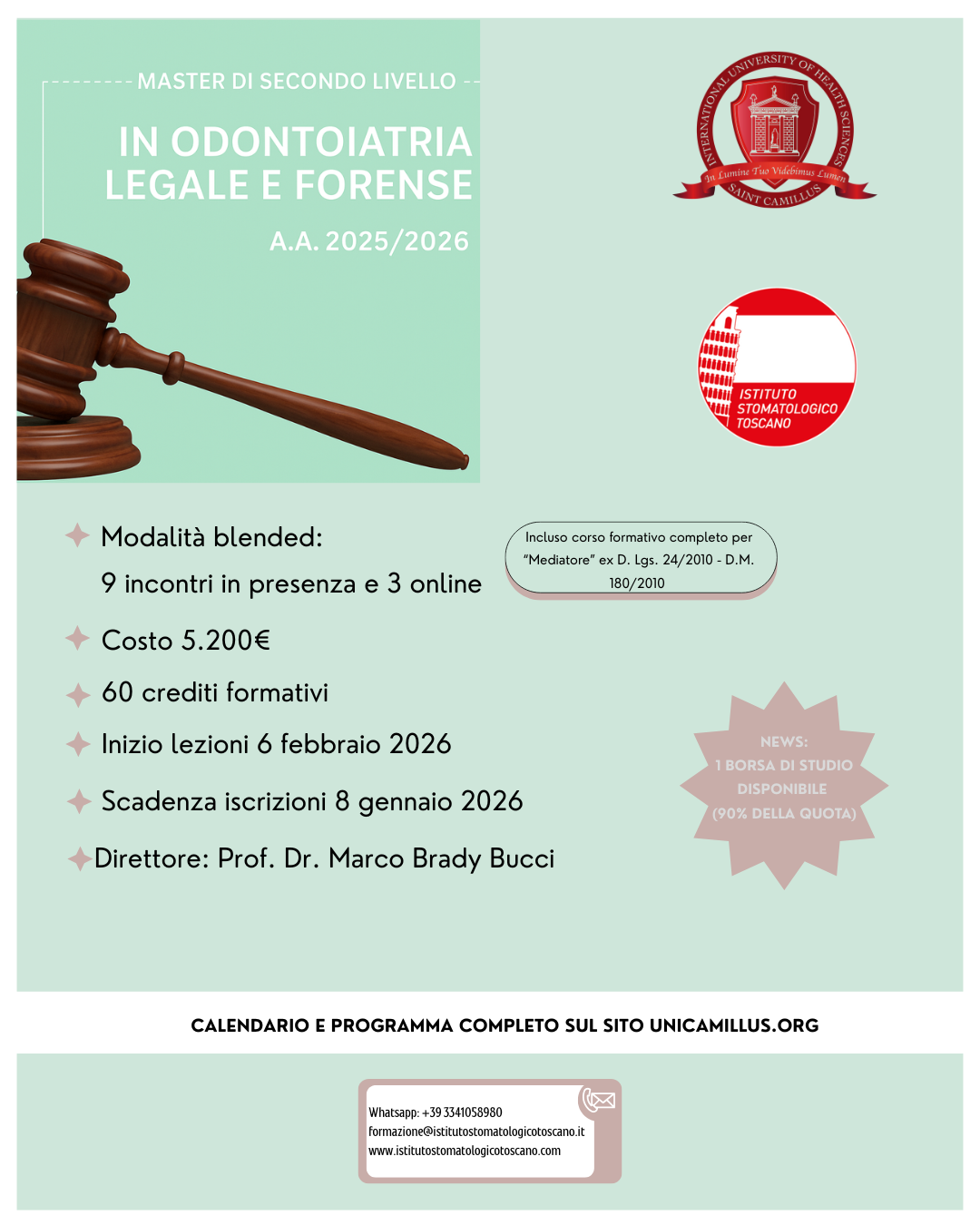 Include un percorso accreditato dal Ministero della Giustizia in conciliazione e mediazione, che può portare al diploma di Mediatore Civile e Commerciale, migliorando competenze comunicative e relazionali. Un master utile per affrontare le sfide quotidiane della professione odontoiatrica.