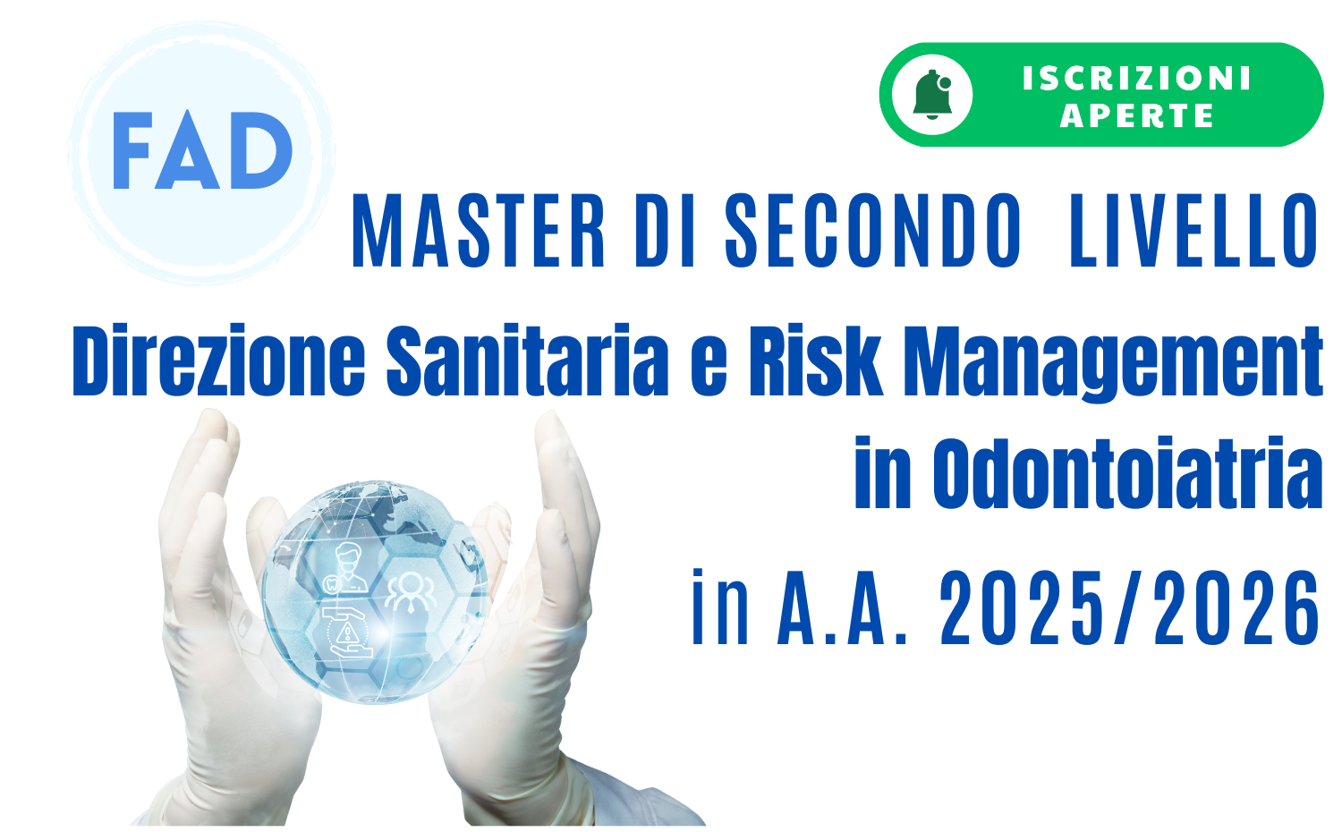 Il Master ha lo scopo di formare e/o consolidare le conoscenze indispensabili per assumere con professionalità e consapevolezza l’incarico di Direttore Sanitario in ambito odontoiatrico, imparando altresì a riconoscere ed affrontare le criticità, prevenire ed affrontare possibili contenziosi e provvedere con cognizione alla scelta della polizza assicurativa migliore per le esigenze della struttura, per sé stessi e per i collaboratori.
