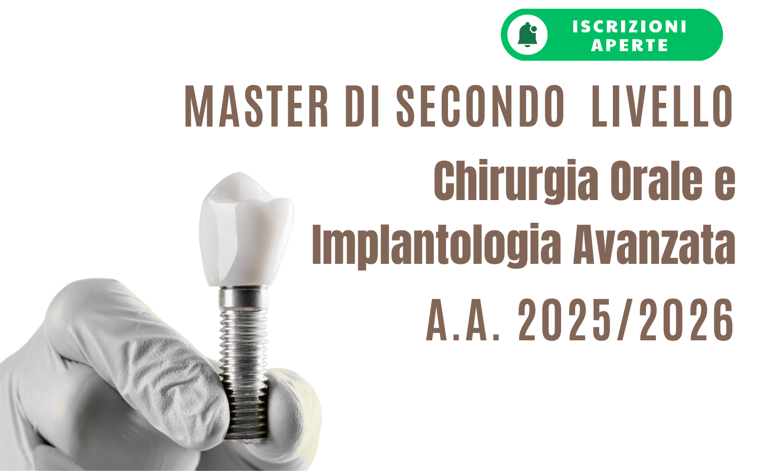 Master di chirurgia orale e implantologia avanzata ha lo scopo di fornire ai laureati legittimamente esercenti l’odontoiatria e la chirurgia orale un percorso formativo basato sulle migliori evidenze scientifiche offerte dalla letteratura sulle procedure basiche della chirurgia orale e del trattamento implanto-protesico delle atrofie estreme dei mascellari.